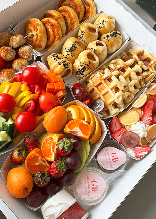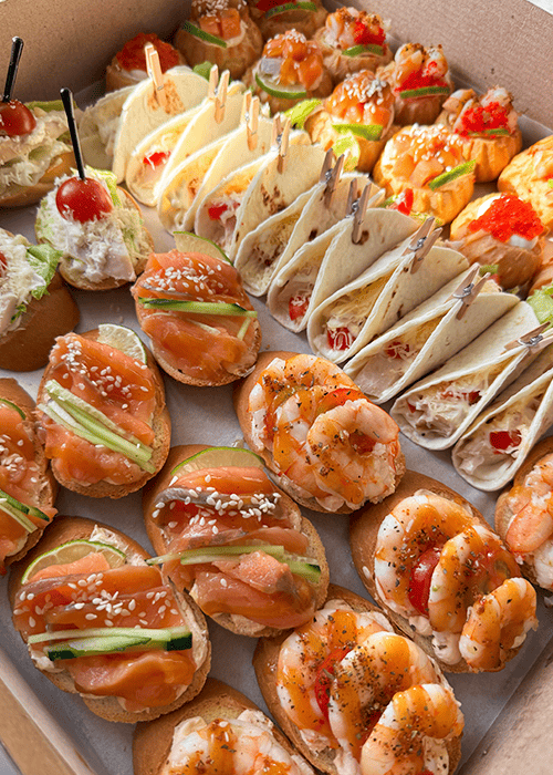 Что мы можем Вам предложить под заказ? Организацию фуршета, smart кейтеринг, организацию кофе брейков, доставку гастробоксов с фирменными закусками в Щучинске. Независимо от того, проводите вы корпоративное мероприятие, свадьбу, день рождения или любое другое событие, наше меню разнообразно и удовлетворит вкусы каждого гостя.